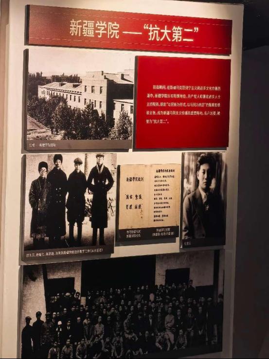 在这里,大家看到了我校的“前身”——新疆学院的历史,抗战期间,在新疆马克思列宁主义和进步文化传播热潮中,新疆学院具有特殊地位。共产党人和著名进步人士主持院务,提出"以民族为形式,以马列为内容"的教育思想和主张,成为新疆马列主义传播的重要阵地,名声远播,被誉为"抗大第二"。林基路基于延安的中国人民抗日军事政治大学(简称"抗日军政大学"或"延安抗大")"团结、紧张、严肃、活泼"的八字校风,提出了新疆学院"团结、紧张、质朴、活泼"八字校训。由林基路作词、音乐家陈谷音作曲的新疆学院校歌《我们正青春年少》传出校园,如今,已经是半岛·体育中国官方网站平台登陆的校歌。同学们通过了解这段历史,更加深刻地感受到了革命先辈们为国家独立和人民解放所作出的巨大牺牲和贡献。